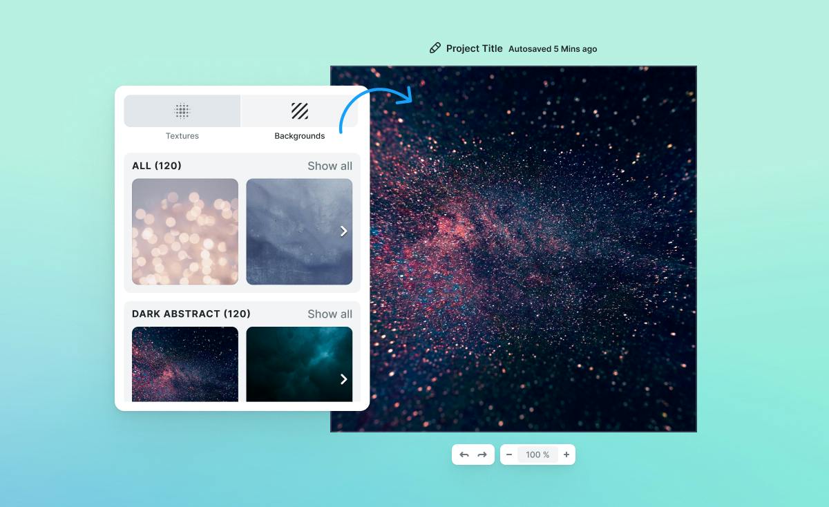 In Kittl you have access to an extensive background image library. You can add or change the background of your designs with a single click. The background image library is curated to offer a wide range of options, catering to various design styles, themes, and preferences. Whether you're looking for a vibrant and energetic backdrop, a serene and nature-inspired scene, a sleek and minimalist environment, or any other aesthetic, you'll find an abundance of choices to suit your creative vision.