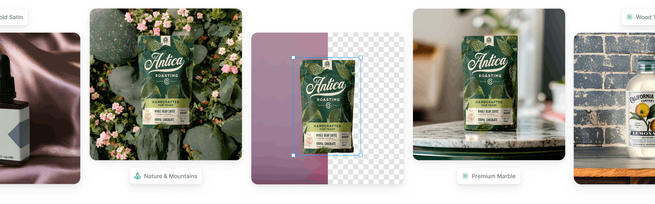 Remove backgrounds from product photos and place them into stunning AI-generated scenes