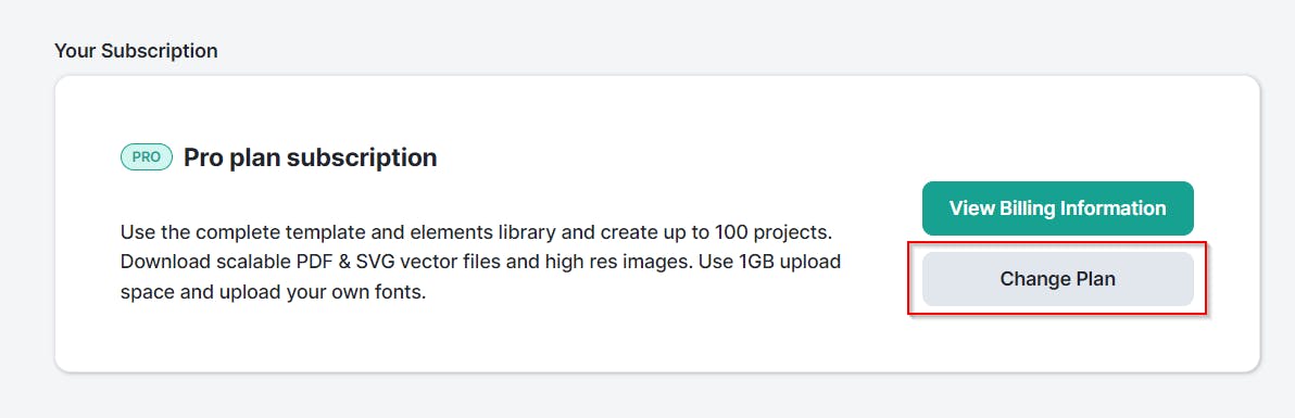 2. Scroll to the “Your Subscription” section and click “Change Plan”