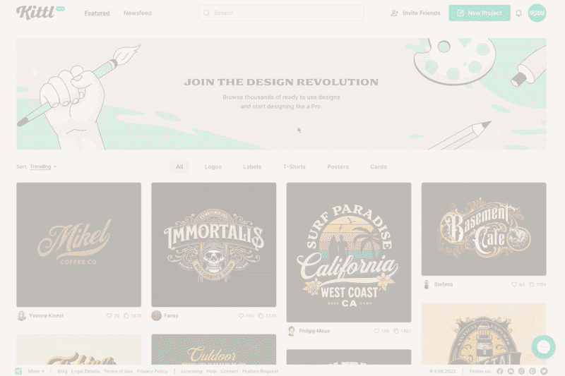 You can use the category menu to filter designs or use the search bar to search for a specific topic, theme or style.