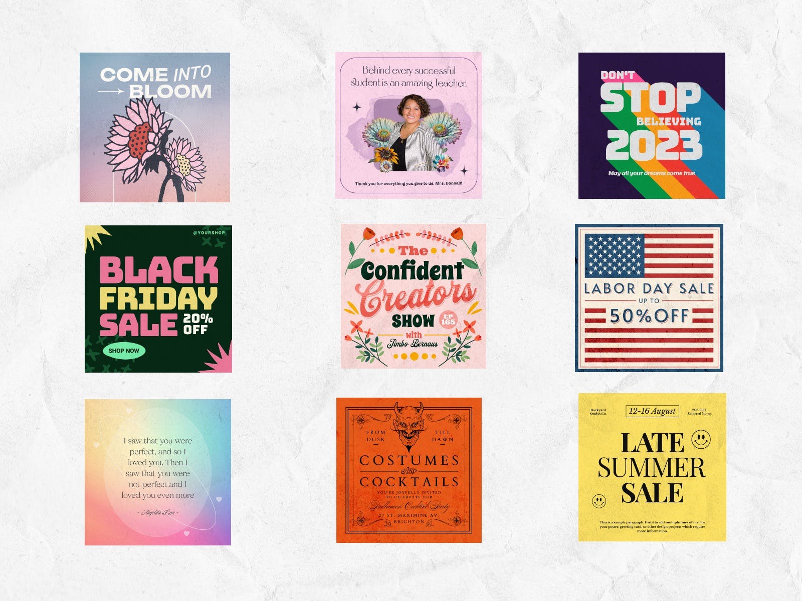 Social media post design is essential for capturing attention and conveying your message effectively. To create stunning visuals, explore Kittl's extensive library of templates. With a variety of styles and themes, you can craft the perfect design for your brand or project. Easily customize any template in your browser using Kittl's user-friendly editor. Sign up for free and start creating today!
