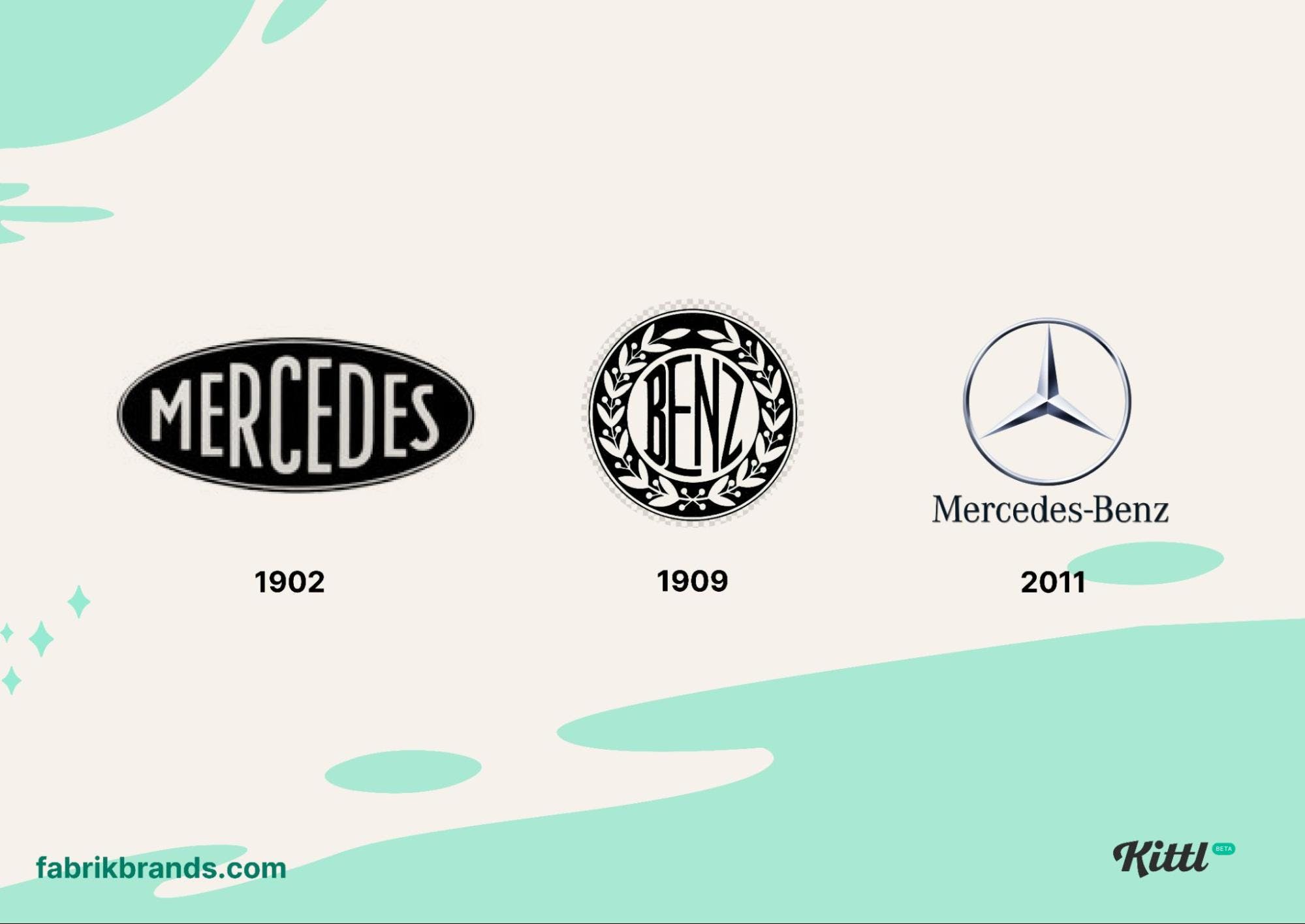 Their first logo in 1902 was only the brand name, ‘Mercedes.’ Seven years later, the word mark on their vintage style logo changed to ‘Benz’. After a couple switches between the name ‘Mercedes’ and ‘Benz’ they eventually settled on hyphenating both names with the grey three-pronged star we know and love toda